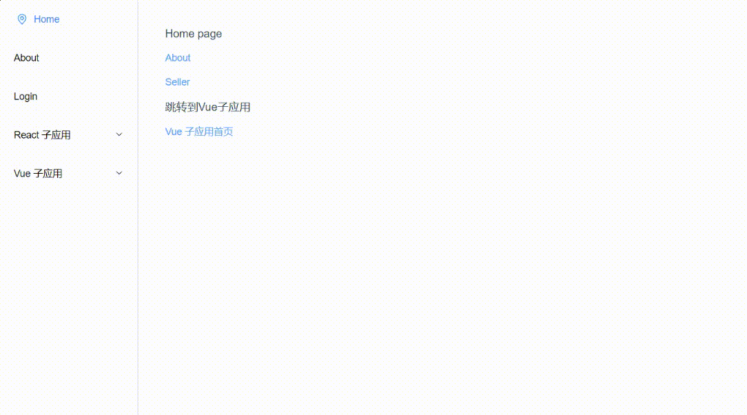 子应用跳转主应用 about 页, 跳转子应用 react 页