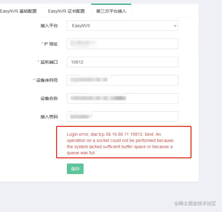 在此前的文章中,我们也分享过关于用户因各种操作配置问题引起的EasyNVR无法级联到EasyNVS并出现各种报错的文章,大家可以翻阅我们往期的博文进行了解。今天我们来分享一个关于EasyNVR无法连接EasyNVS并报错“a queue was full”的排查与解决办法。