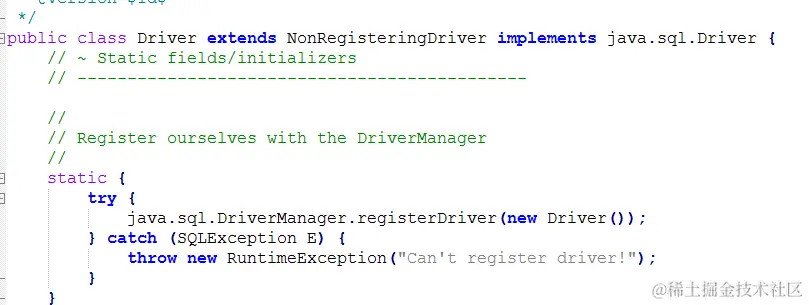 查看 mysql的Driver的时候有下面一段代码: