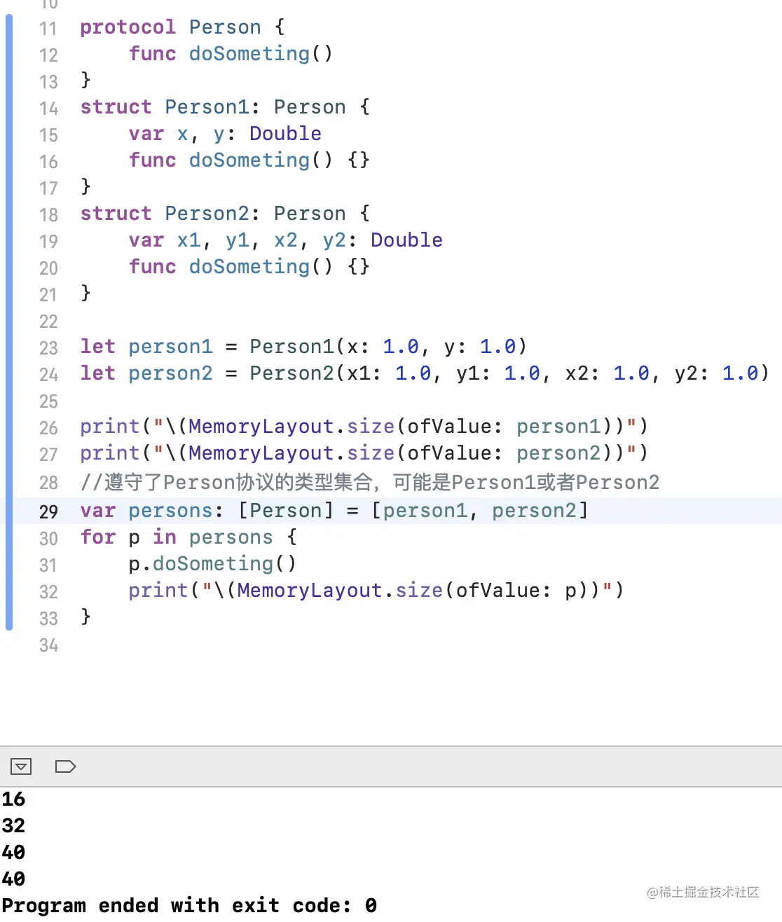 可以发现在这种情况下,变量 persons 中存储的元素是一种特殊的数据类型:Existential Container。