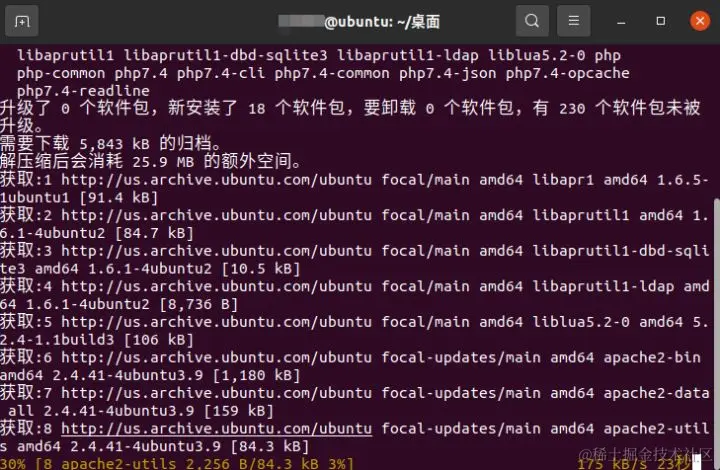 由于cpolar并没有加入Ubuntu的包管理器,因此我们采用一键安装脚本的方式进行安装(虽然也可以按步骤安装,但太过麻烦,因此此处不再过多介绍)。进入Ubuntu命令行界面后,我们输入“sudo apt install apache2 php -y”命令,安装apache2