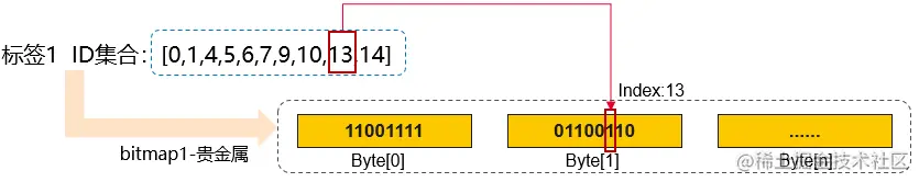 位图索引是一种使用位图的特殊索引,主要针对大量相同值的列而创建。位图中位置编码中的每一位表示对应的数据行的有无。位图索引适合固定值的列,如性别、婚姻状况、行政区等等。而不适合像身份证号、消费金额这种离散值的列。用户画像场景中,每一个标签,对应大量的人群。标签的数量是有限的枚举值,这一特点非常适合位图索引。