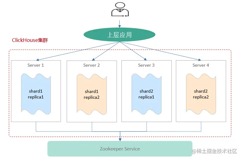 ClickHouse集群由1到多个分片组成,而每个分片则对应了ClickHouse的1个服务节点。分片的数量上限取决于节点数量(1个分片只能对应1个服务节点)。