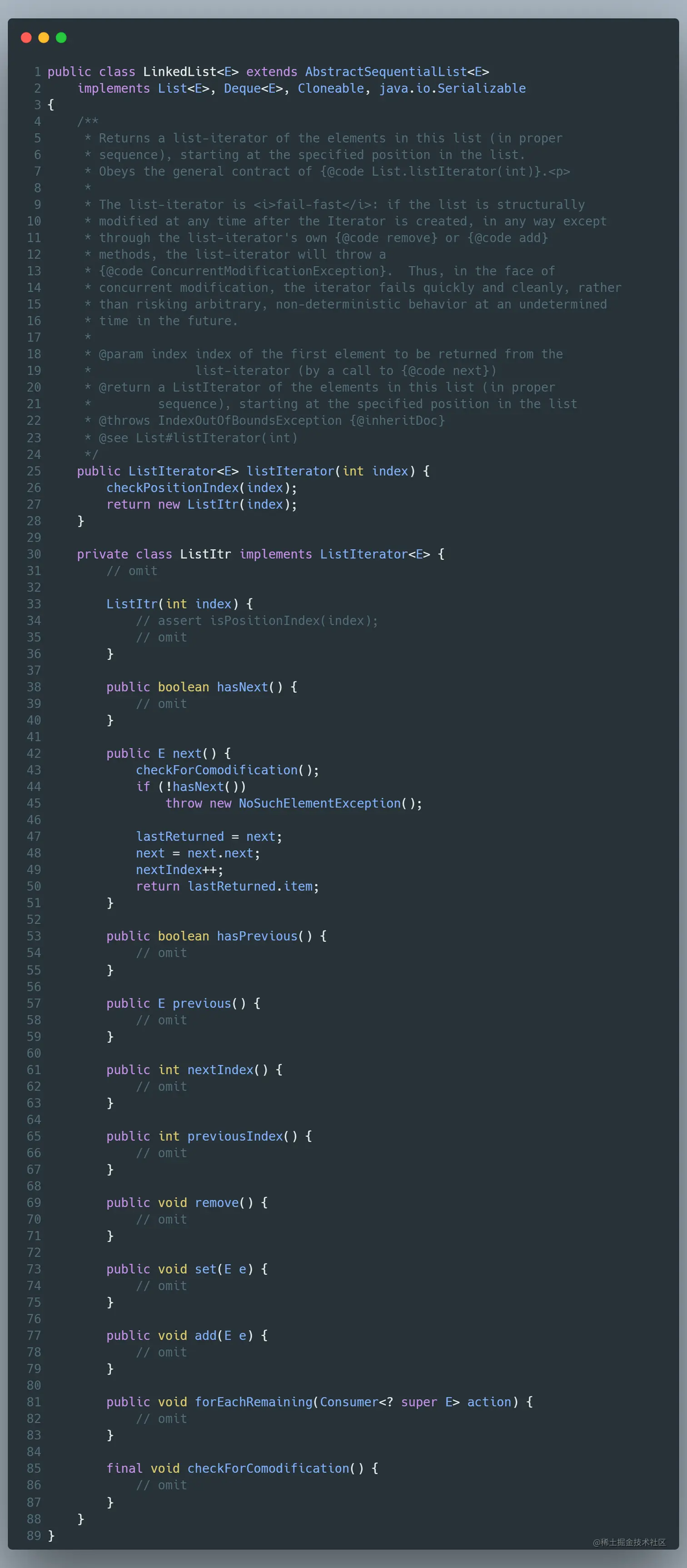 结合 ArrayList 与 LinkedList 类部分关键源码来理解 Collection 如何实现工厂方法模式: