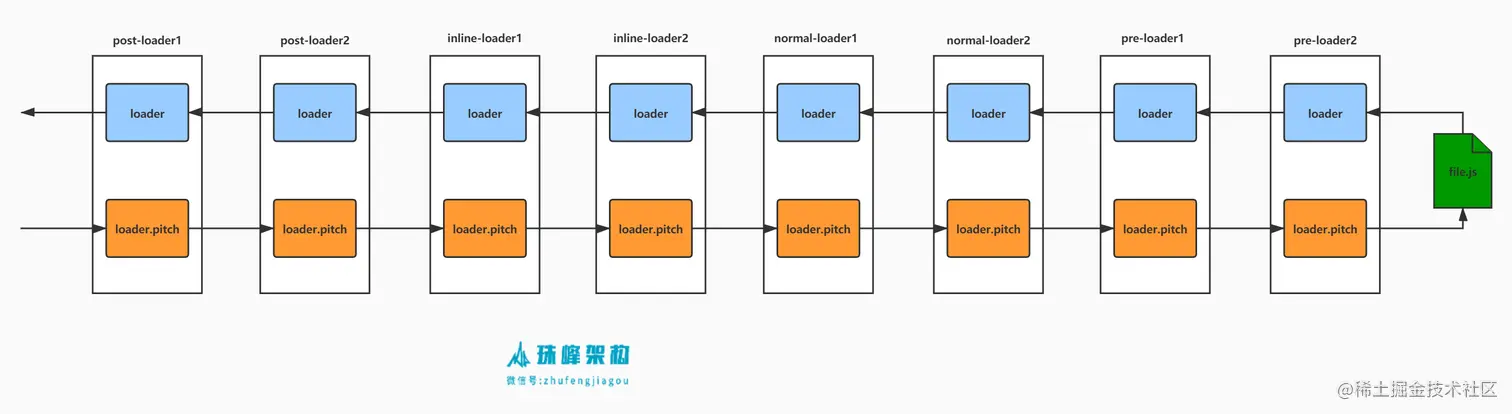 针对每个文件,从config文件中收集起来所有的loader之后,执行过程可以概括为以下几步: