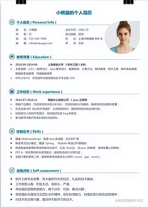 在面试之前,不得不聊聊简历,简历是职场的敲门砖,是拿到offer的通行证,**那么对于一个初级测试工程师来说,应该如何写简历呢?**可能对于新手来说,完全不知道怎么下手,这里我们从0开始写,首先你必须去找一份简历模板,可以是前程无忧,智联招聘,BOSS等自带的模板,**也可以是网络上下载的模块,要求:上下结构,简单即可!不要太花哨!**这里取几个栗子,什么样的模板是合适的!如下:(对于照片可有可无,长得Nice和可爱的妹纸除外)
