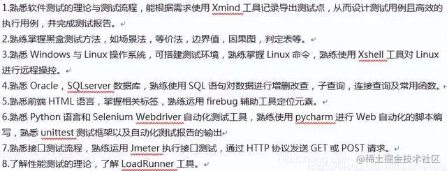 1.个人建议一般要写8条以上,包括数据库,Linux,测试理论,接口测试,自动化测试或性能测试选其一!