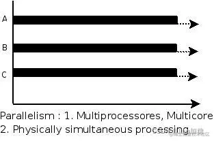 指在同一时刻,有多条指令在多个处理器上同时执行。就好像两个人各拿一把铁锨在挖坑,一小时后,每人一个大坑。所以无论从微观还是从宏观来看,二者都是一起执行的。