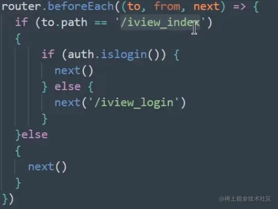 导航守卫对路径进行了一个判断,如果此刻我们已经登录上了自己的账户,则会跳转到下一个界面,否则会继续登录