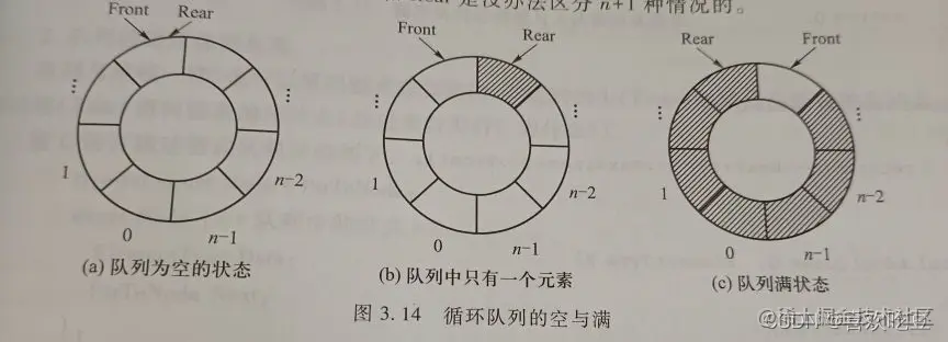 在目前所说的操作情况下,当Front和Rear的值相等时,队列可能为空也可能是满的,我们无法判别。