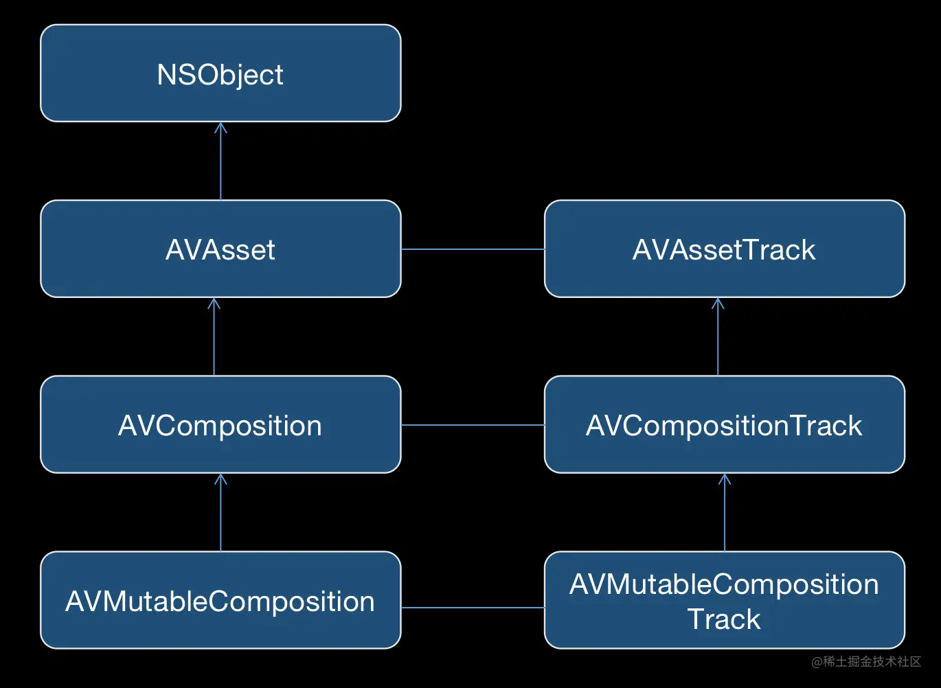在Assets模块的中,我们说到AVAsset包含一个或多个 AVAssetTrack,同样作为子类的AVComposition也包含一个或多个 AVCompositionTrack,而我们处理的对象正是他们的可变子类AVMutableComposition和AVMutableCompositionTrack。