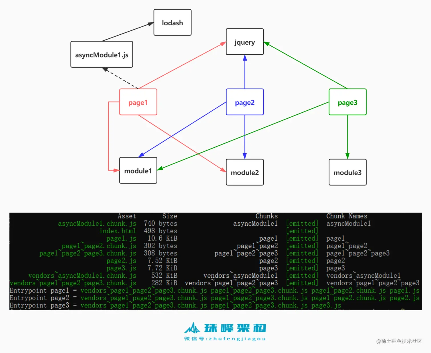 最初,chunks(以及内部导入的模块)是通过内部 webpack 图谱中的父子关系关联的。CommonsChunkPlugin 曾被用来避免他们之间的重复依赖,但是不可能再做进一步的优化。