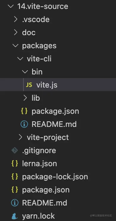 这里的vite-cli目录实际上是被链到我们的14.vite-source/packages/vite-cli下了,所以最终会执行到我们自己写的vite.js
