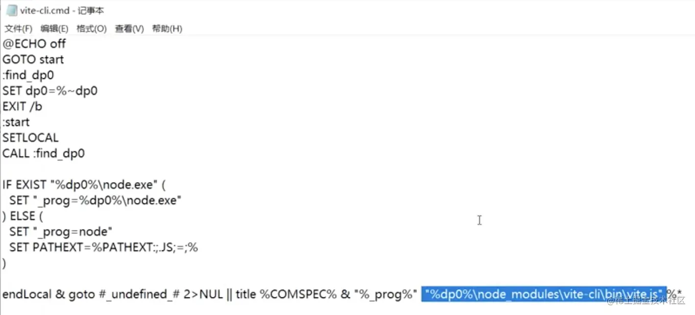 这时在任意目录下执行vite-cli,就会去/AppData/Roaming/npm下找vite-cli.cmd文件,然后执行这个cmd命令,这个cmd命令内容如下:
