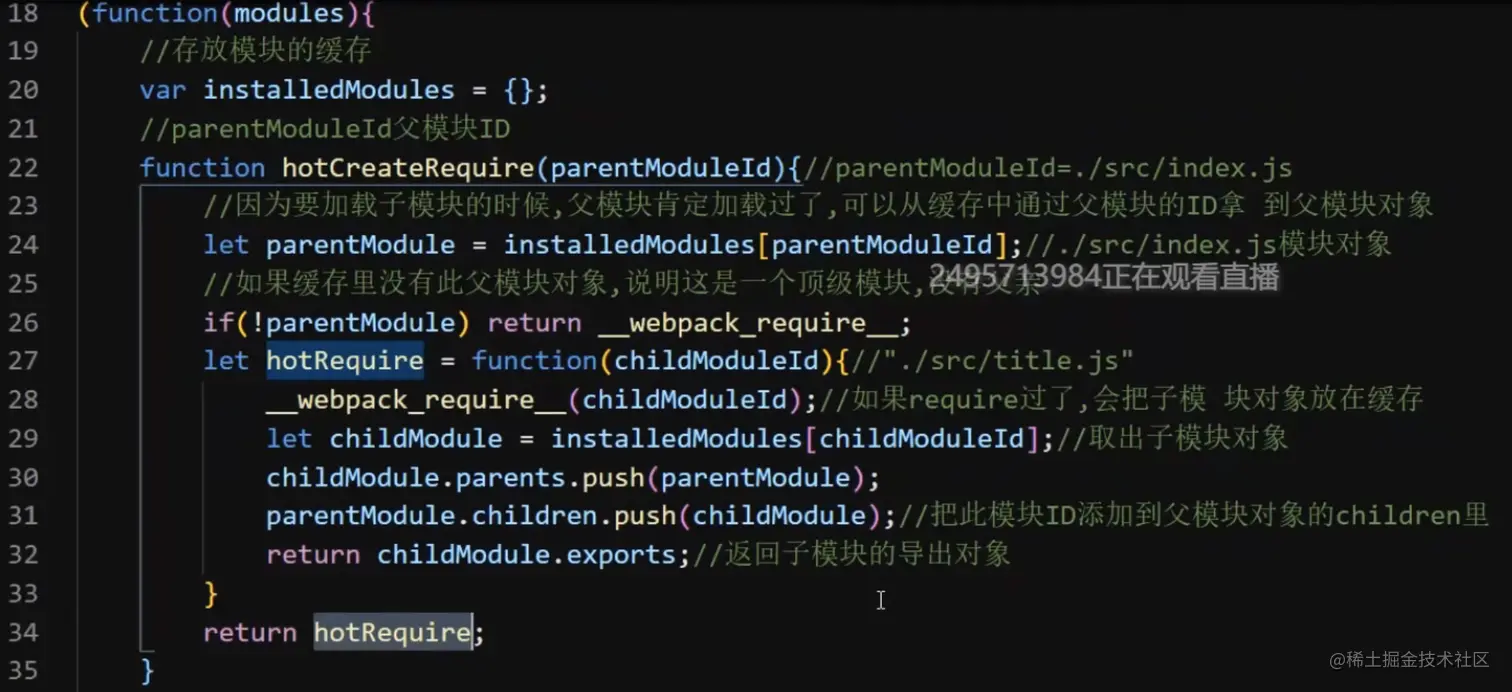 let oldModule = cache[moduleId];//获取到老的模块 module parents children