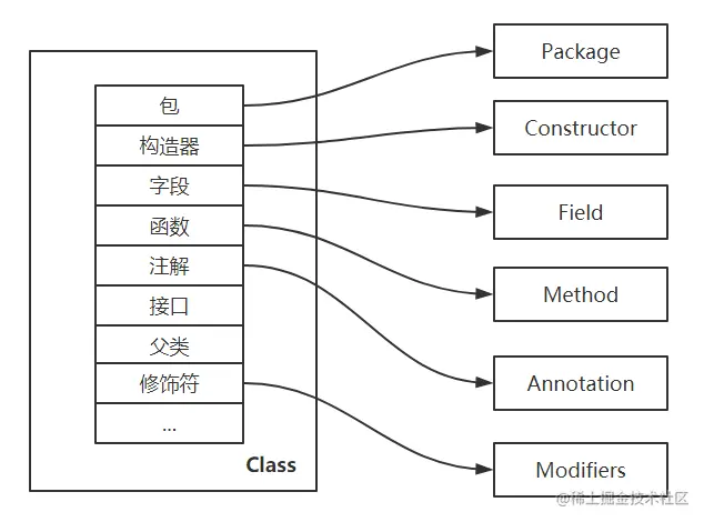 反射的源 java.lang.Class,Class 类是 JDK 对我们自定义的类和内置类的统一描述,Class 类中存储了类运行时的类型信息。在 Class 类,可以获取如下图所示类的公共信息。Class 类与反射的联系密切相关,Class 类和 java.lang.reflect 一起对反射提供了支持。