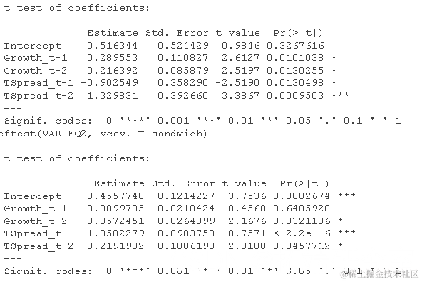 VAR可用于获得与上述相同的系数估计,因为它也适用于每个方程的 OLS。
