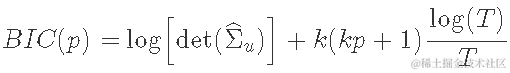 其中 ^Σu表示对 VAR 误差的 k×k协方差矩阵的估计,det(·)表示行列式。