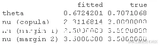这个特定的copula可能不是最好的,因为它显示了严重的尾部相关性,而这在我们的数据中并不强烈,不过这只是一个开始。