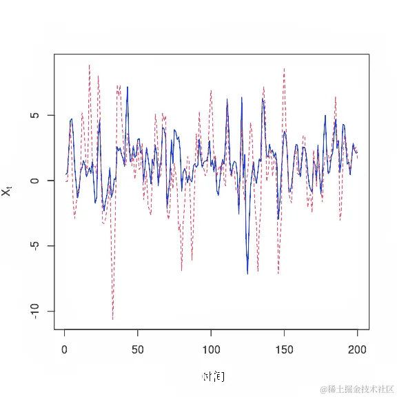 我们现在展示如何将 ARMA(1,1)-GARCH(1,1) 过程拟合到 X