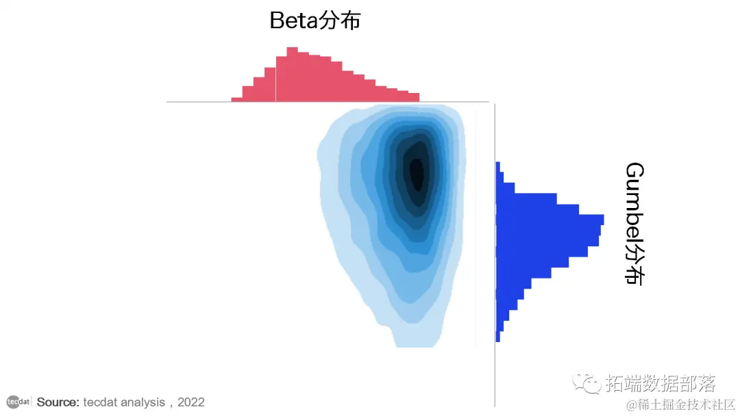现在,我们在上面的基础上(构建的高斯Copula函数),把边缘分布换成Beta分布和Gumbel分布: