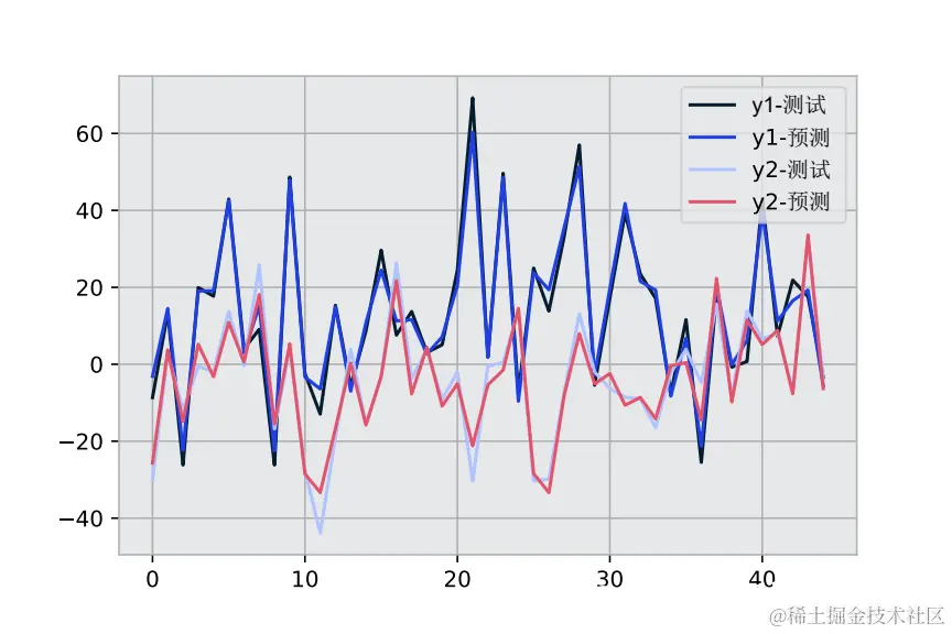 我们将使用经过训练的模型预测测试数据,并检查 y1 和 y2 输出的 MSE 率。
