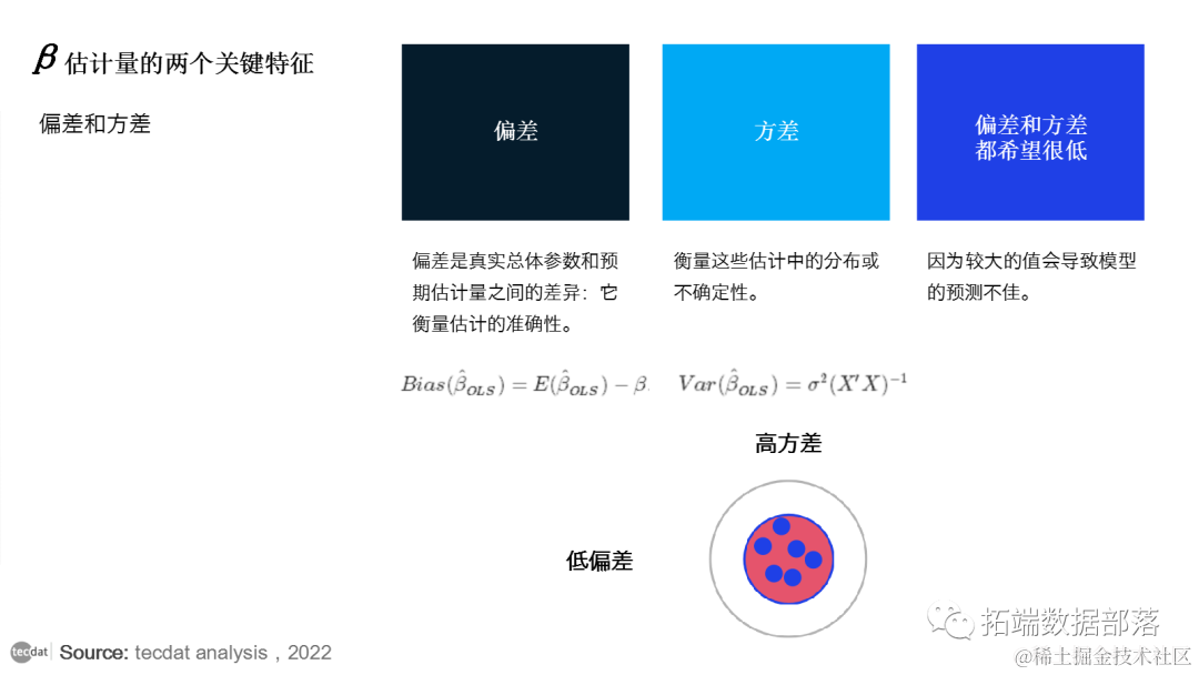 在统计学中,需要考虑估计量的两个关键特征:偏差和方差。偏差是真实总体参数和预期估计量之间的差异: