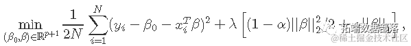 。 _弹性网络_惩罚由α控制,LASSO(α= 1,默认),Ridge(α= 0)。调整参数λ控制惩罚的总强度。