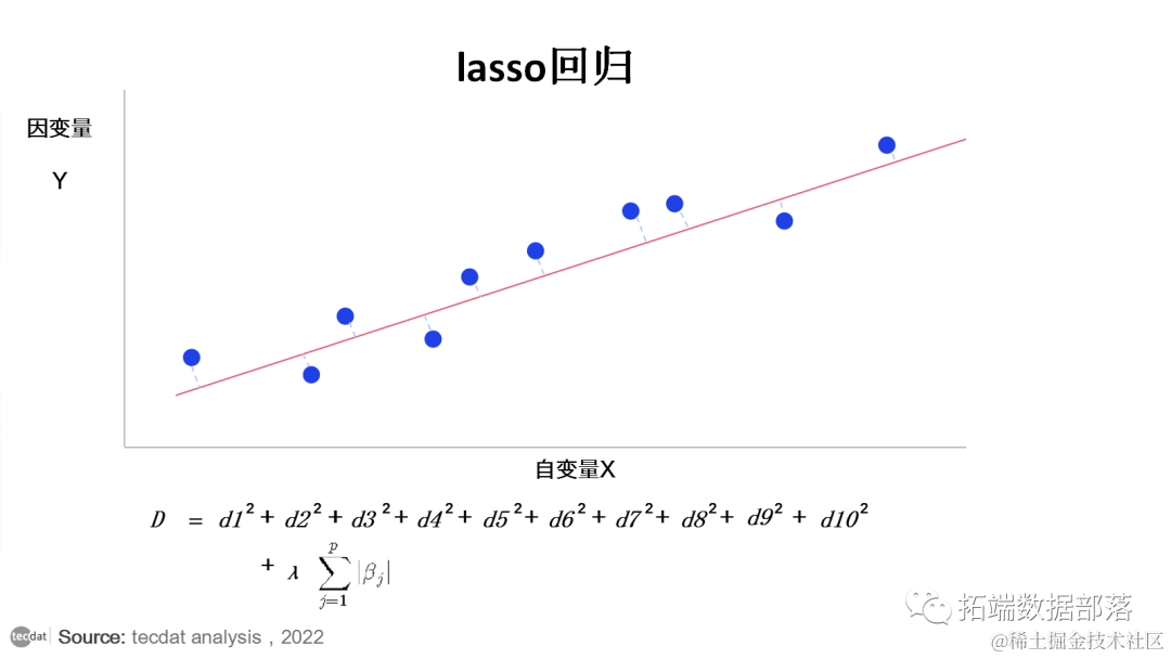 D 等于 最小二乘 加上 lambda 乘以 (系数大小的绝对值)的总和
