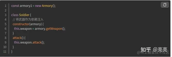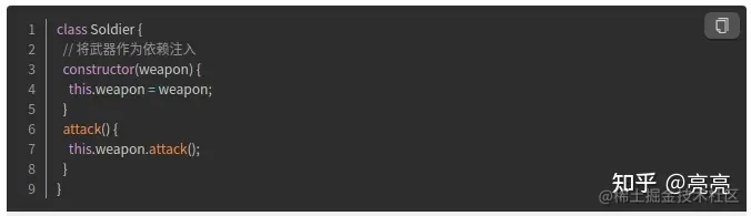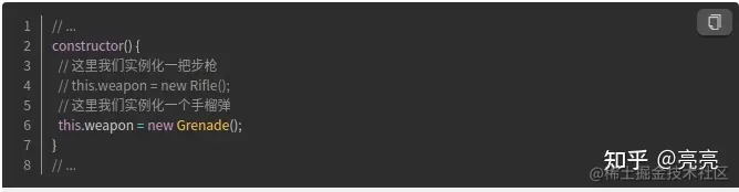 我们有个士兵的类,在类内部会实例化一种武器: