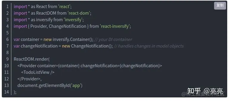 接下来我们看看专业的DI库如何与React结合: