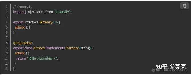 通过inversify提供的injectable decorator标记该class是可被注入的。