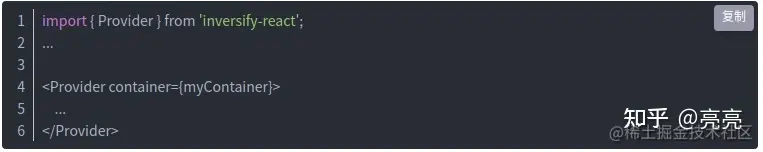 inversify-react 是一个唯一执行依赖注入的库。就像使用 React Context.Provider一样,我们从这个库也能拿到一个 Provider: