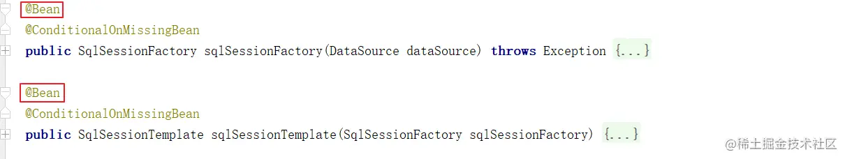 所以要完成Mybatis的自动配置,需要在类路径中存在SqlSessionFactory.class、SqlSessionFactoryBean.class这两个类,同时需要存在DataSource这个bean且这个bean完成自动注册。