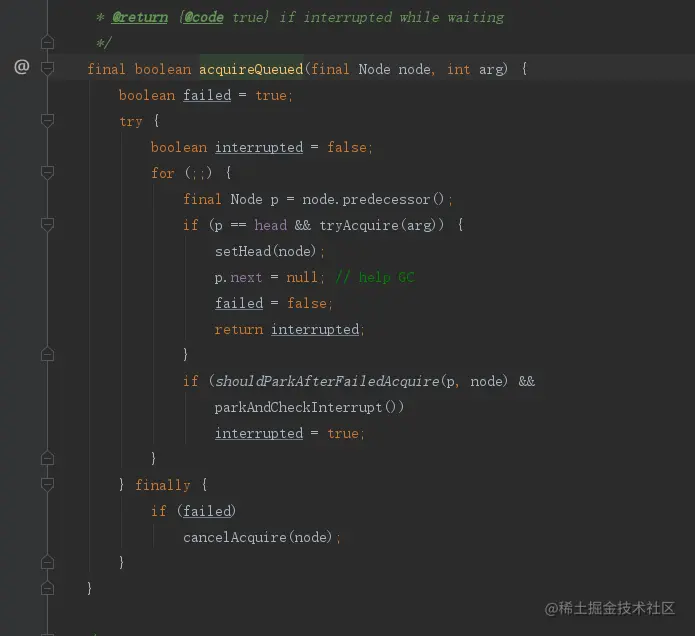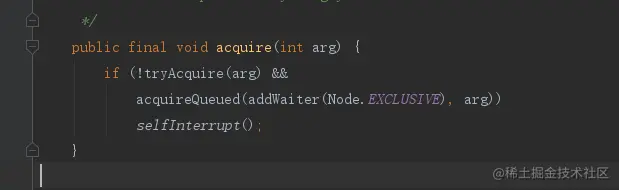 然后调用acquireQueued方法