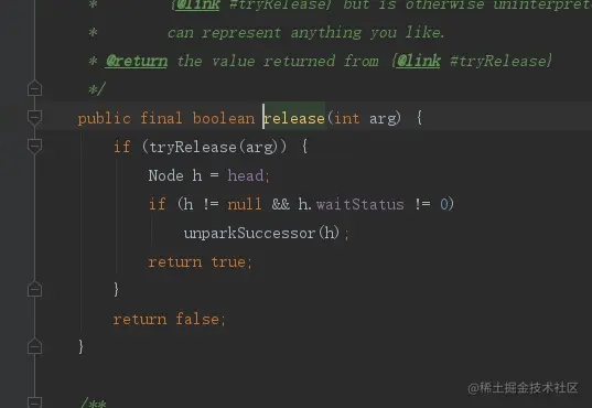 ReentrantLock的unlock其实是调用AQS的release方法,我们直接进入release方法,看看是如何实现的