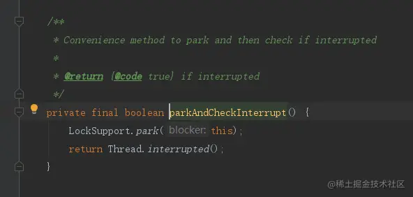 接下来就会调用parkAndCheckInterrupt