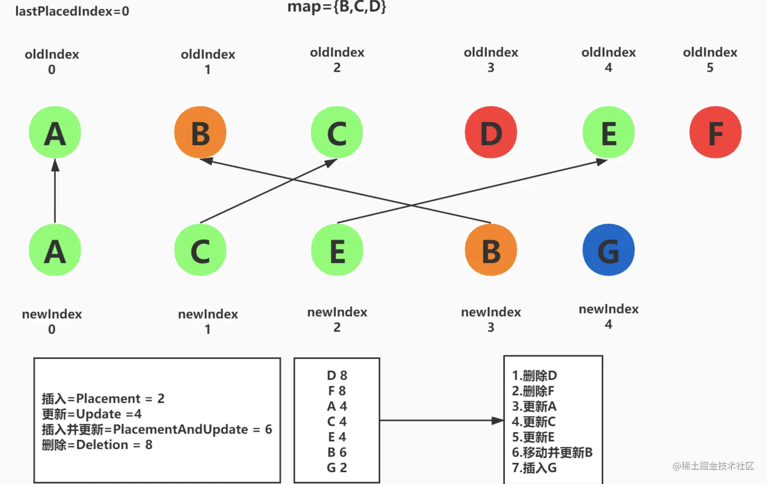 对于能找到可以复用的老节点的情况,此处就需要用到上面我们介绍的lastPlacedIndex: