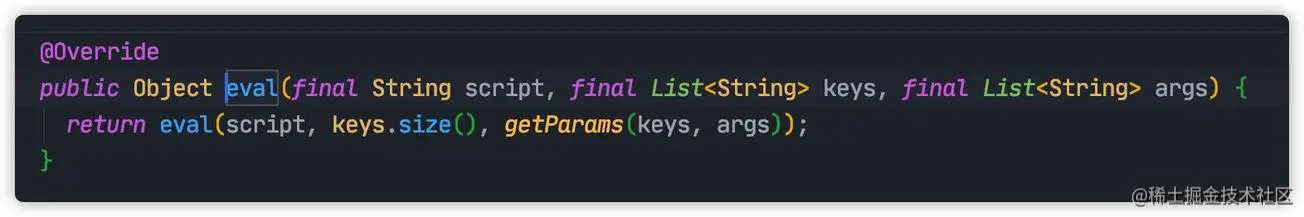 private Object eval(Object nativeConnection, RedisScript redisScript, final List<String> keys, final List<String> args) {