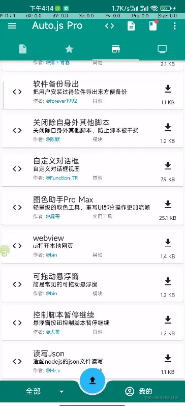 autojs软件自带的脚本商店有很多脚本, 一个一个手动下载太麻烦给了, 我们写个脚本批量下载一下