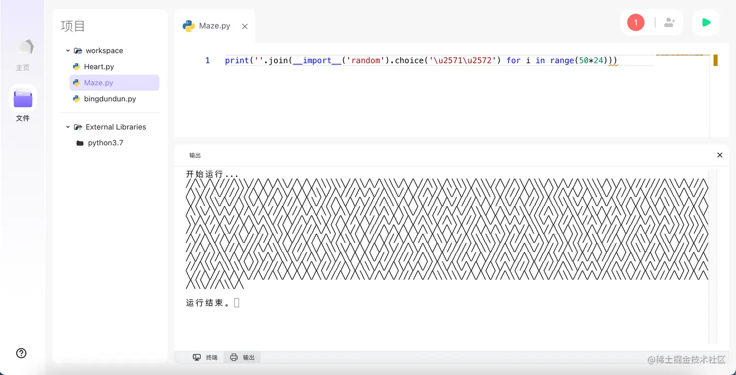 我加入了小K的项目,查看这个项目的代码,点击右上角运行,出现运行结果。