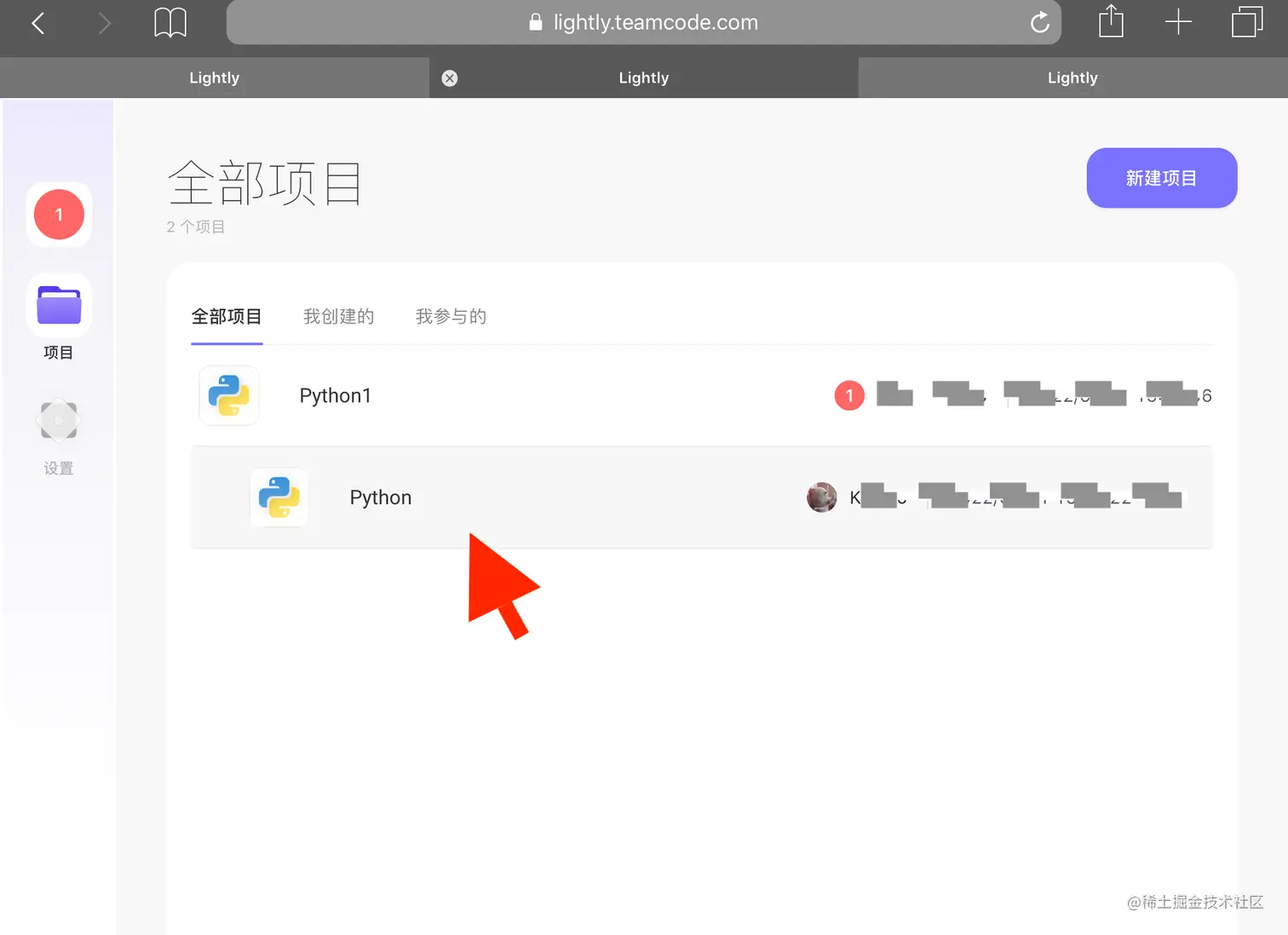 Lightly目前支持 C、C++、Java、Python 四种语言,可以说是集c语言编程软件、python集成开发环境、Python编程软件、在线c语言开发环境、C++ 编译器、C++/Java在线编程等多功能为一体的云端+本地IDE。登陆后即可看到小K分享过来的项目Python,点击进入项目。