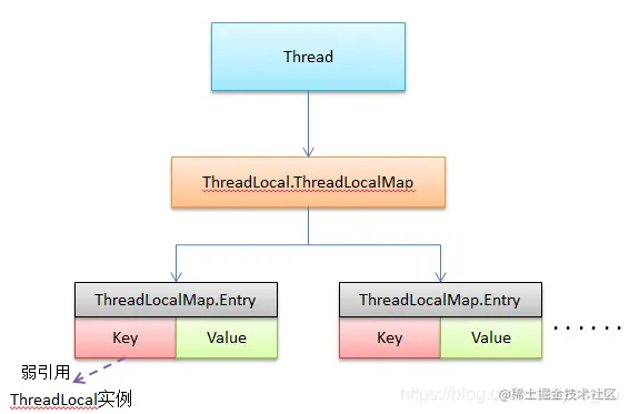 ThreadLocalMap的容器为Thread$ThreadLocalMap$Entry[],引用关系如图: