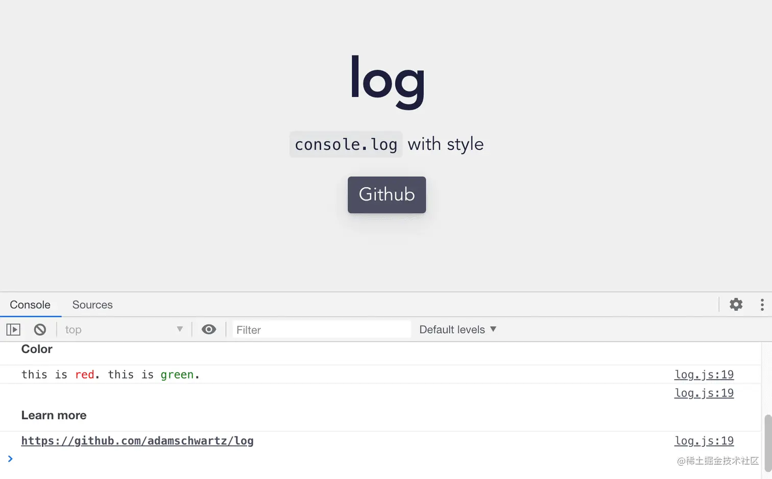 6、log:浏览器 console.log 风格的 CSS 库。查看效果