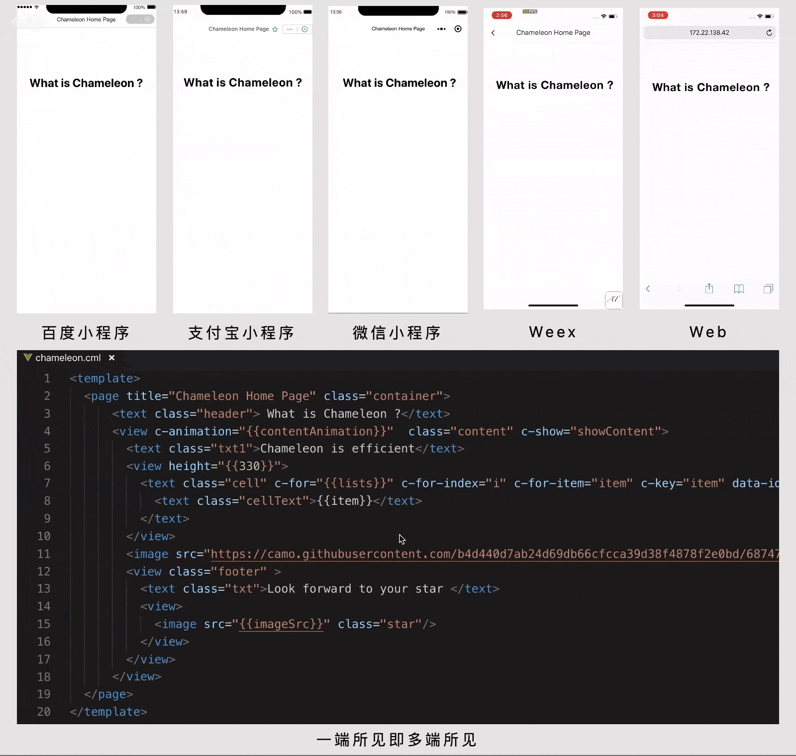 15、chameleon:一端所见即多端所见。适应不同环境的跨端整体解决方案,支持 Web、小程序、快应用 等平台
