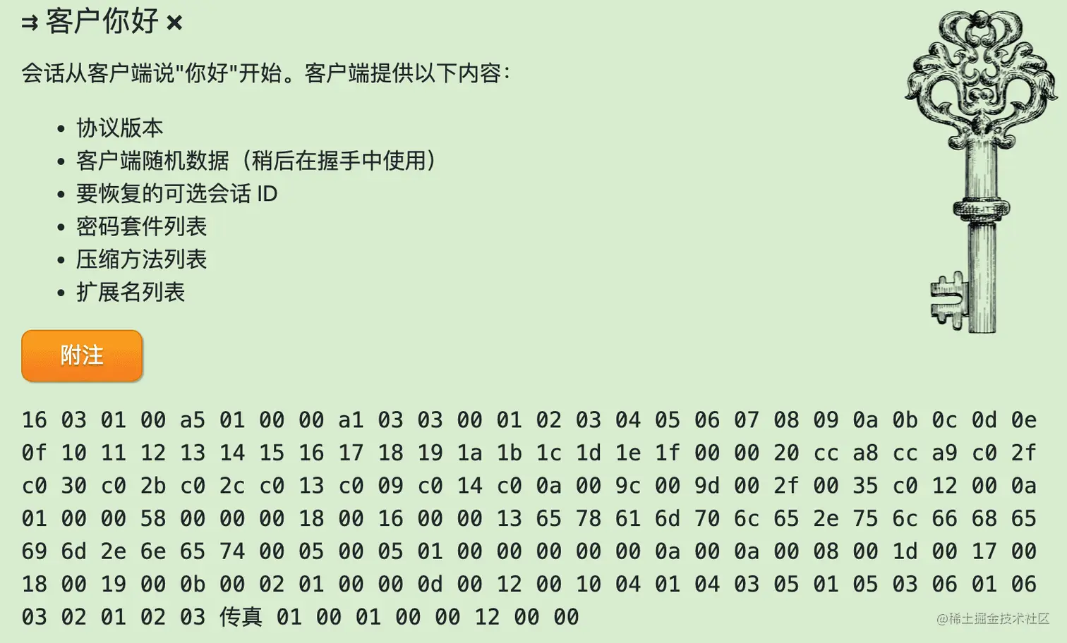 9、illustrated-tls:图解 TLS 连接。用在线交互的方式讲解 TLS 的全过程,从建立 TLS 1.2 客户端发送 ping 再到接收 pong,详细到每一个字节。在线尝试