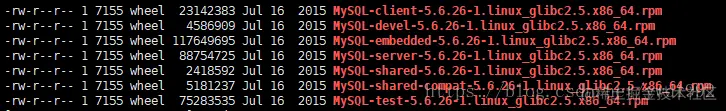 tar -xvf MySQL-5.6.26-1.linux_glibc2.5.x86_64.rpm-bundle.tar