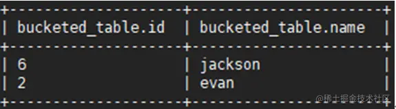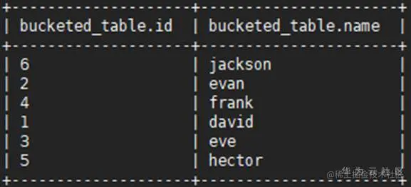 步骤 3 向表里插入准备好的没有划分桶的数据,例如将没有划分桶的表users的数据插入目标表bucketed_table: