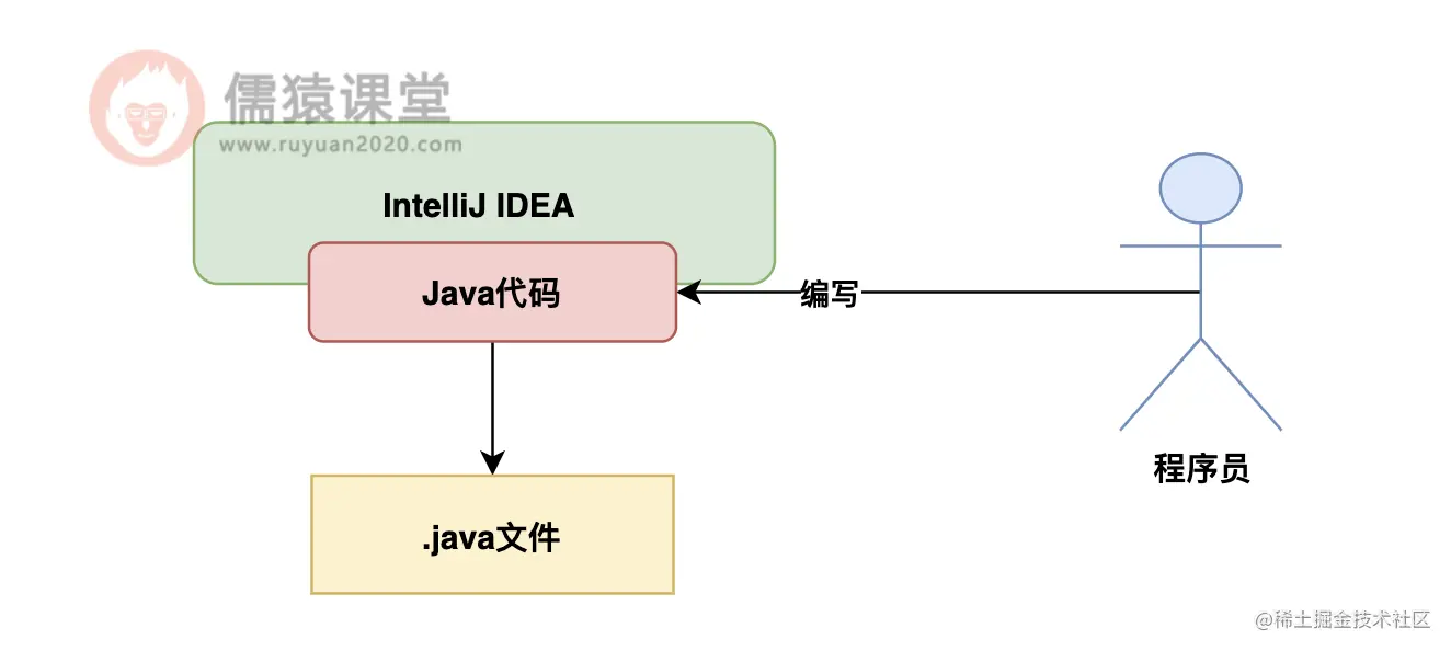 接着呢,假设你写好了一些代码,现在想把代码运行起来了,此时就应该要先做一个事情,那就是编译,这个编译的话,意思就是说,你写好的Java代码,咱们的计算机是看不懂的,必须得把写好的代码编译成计算机能看懂的机器语言,就是字节码,所以这个时候我们就得先做编译这个动作,当然平时你要是用Intellij IDEA的话,其实它自动就给你把代码编译好了,编译好的字节码文件就是.class后缀的,如下图。