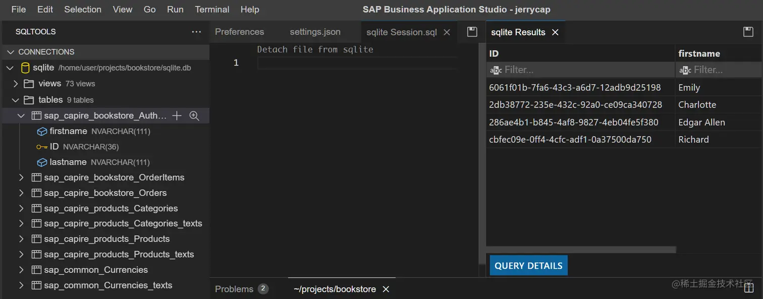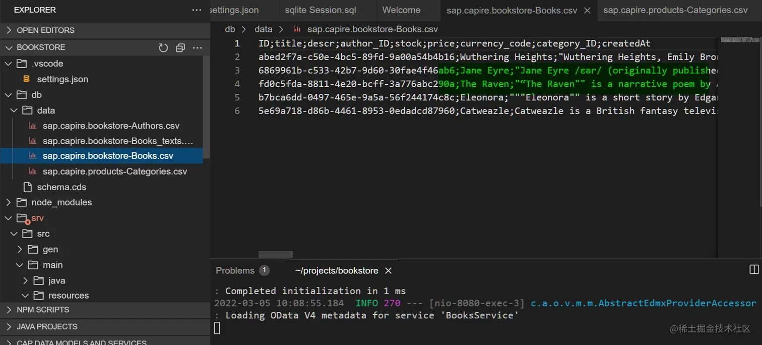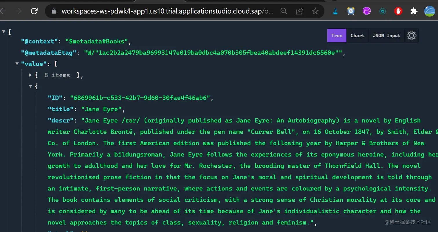 就能访问到之前通过 sap.capire.bookstore-Books.csv 插入到 SQLite 里的数据了: